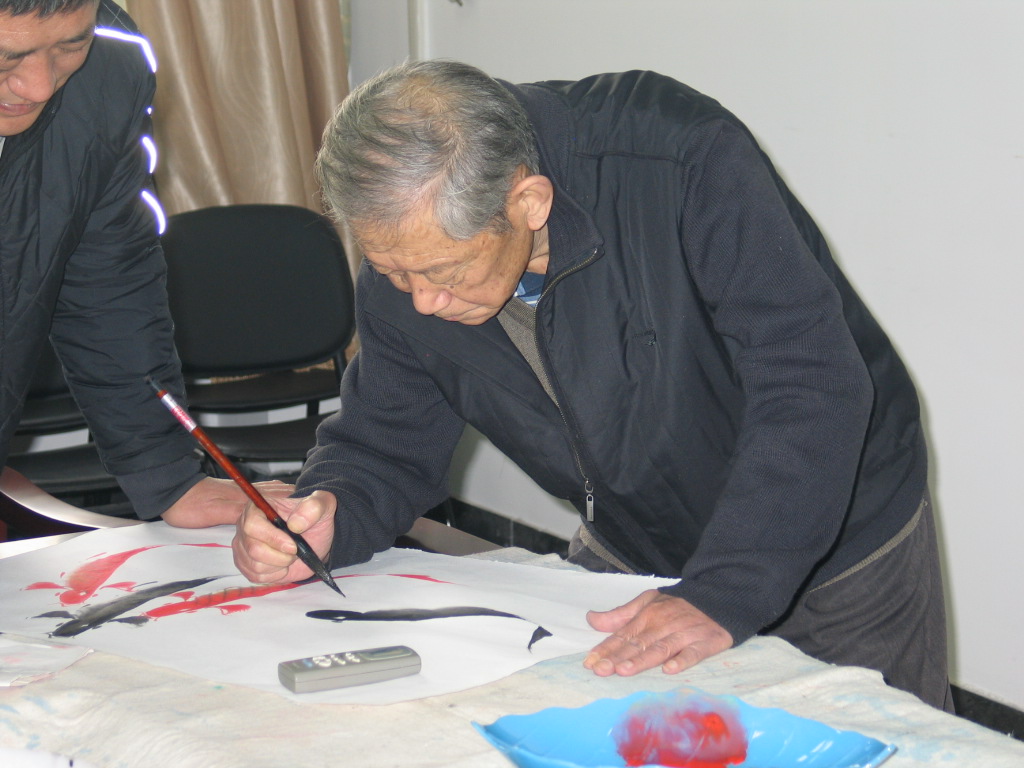欣赏会伊始,何宗贵先生和胡庆林先生与研究生亲切交流,何老与研究生分享了自己的学习之路和艺术历程,并鼓励研究生在学习之余也要培养自身的艺术情操。虽然室外天气寒意浓浓,但两位老先生亲切的态度,丰富的学识,幽默的话语让会议室中的气氛暖意十足。何宗贵先生和胡庆林先生还当场挥毫泼墨,让现场的师生充分感受到了中国传统文化的魅力。最后,何宗贵先生提笔为研究生题字,并在字里行间提出了对研究生的要求和期望。